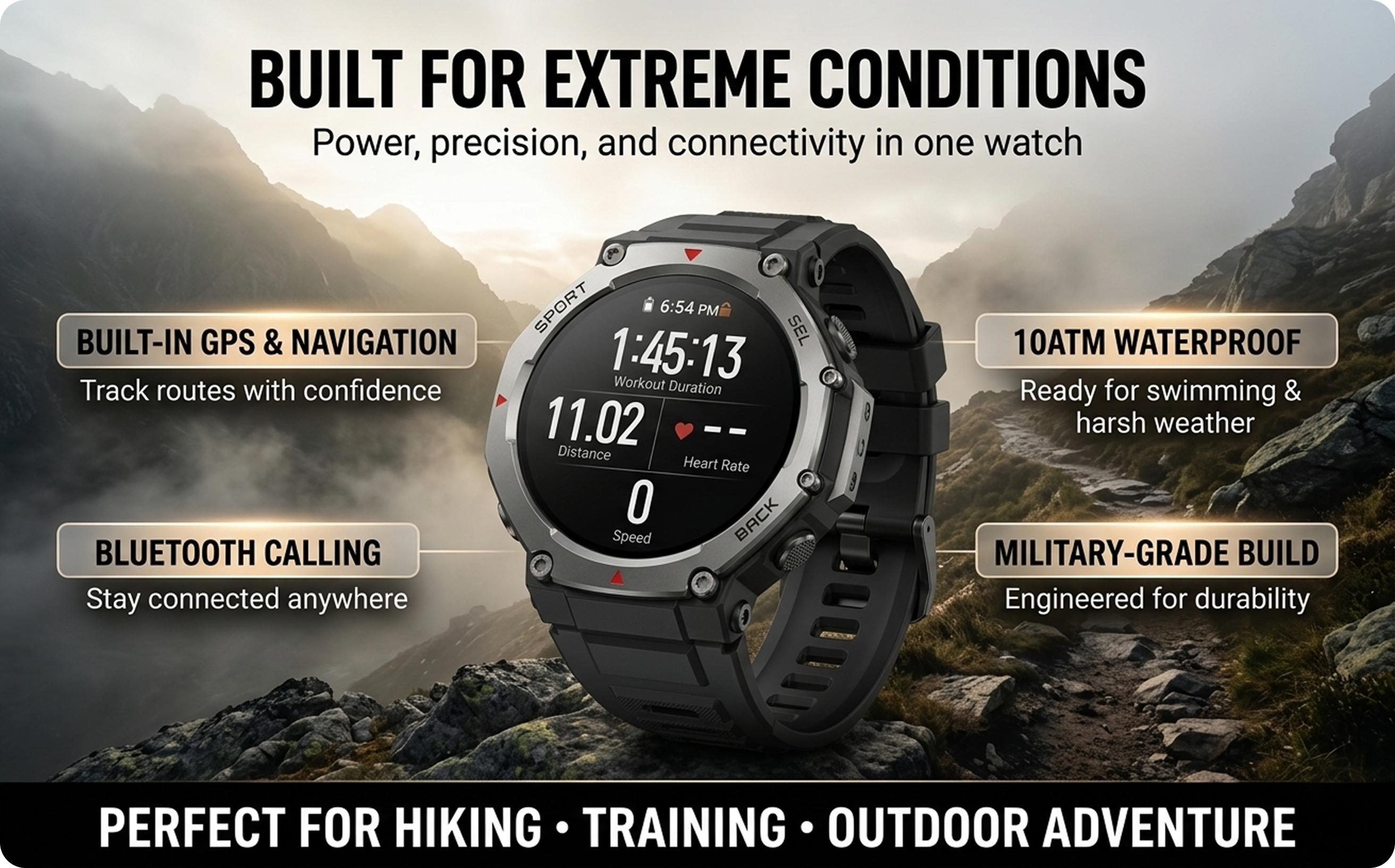 Unlike standard fitness trackers, this rugged smartwatch combines durability with high-tech functionality tailored for outdoor adventurers. Its military-grade construction ensures it thrives where others fail, while built-in GPS and navigation tools provide reliable off-grid performance. With powerful health tracking and Bluetooth calling, it outperforms traditional sports watches and keeps you connected on every journey.