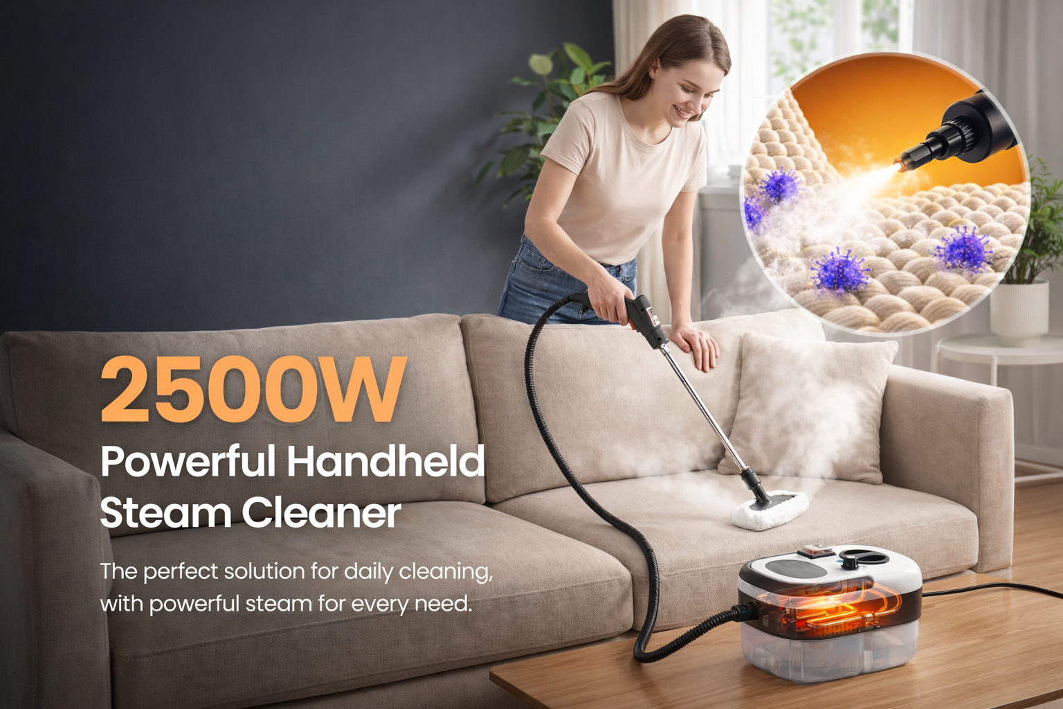 2500W high pressure steam cleaner Handheld Deep-Clean Steamer for Kitchen, Car & AC