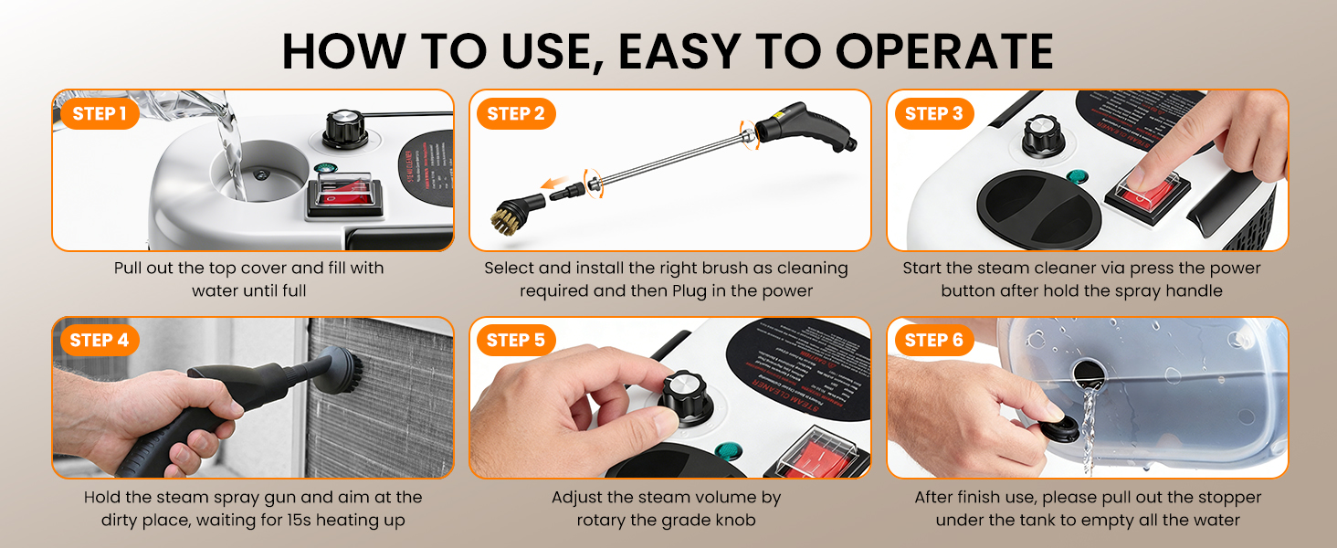 • High-temperature steam to dissolve grease, stains, and dirt