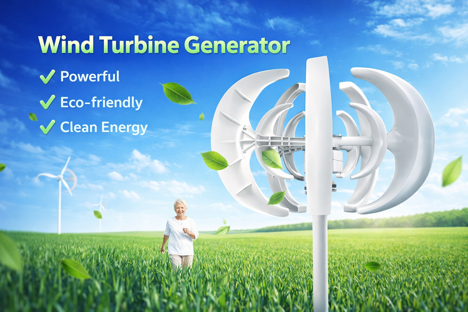 Unlock the potential of renewable energy with the Vertical Wind Power Turbine, designed for roof wind energy generation. This windmill provides a highly efficient way to harness the power of the wind. With its MPPT Controller, the turbine ensures optimal energy conversion, making it ideal for those looking to reduce electricity costs.