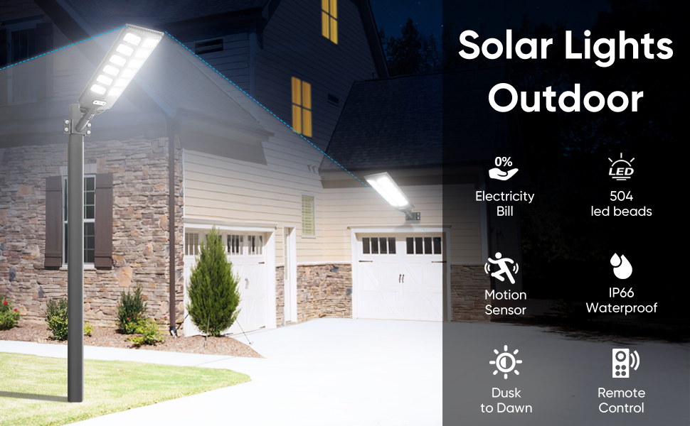 504LED Ultra-Bright Solar Street Light – Wide Angle Motion Sensor, Remote Control, Energy-Efficient, Waterproof