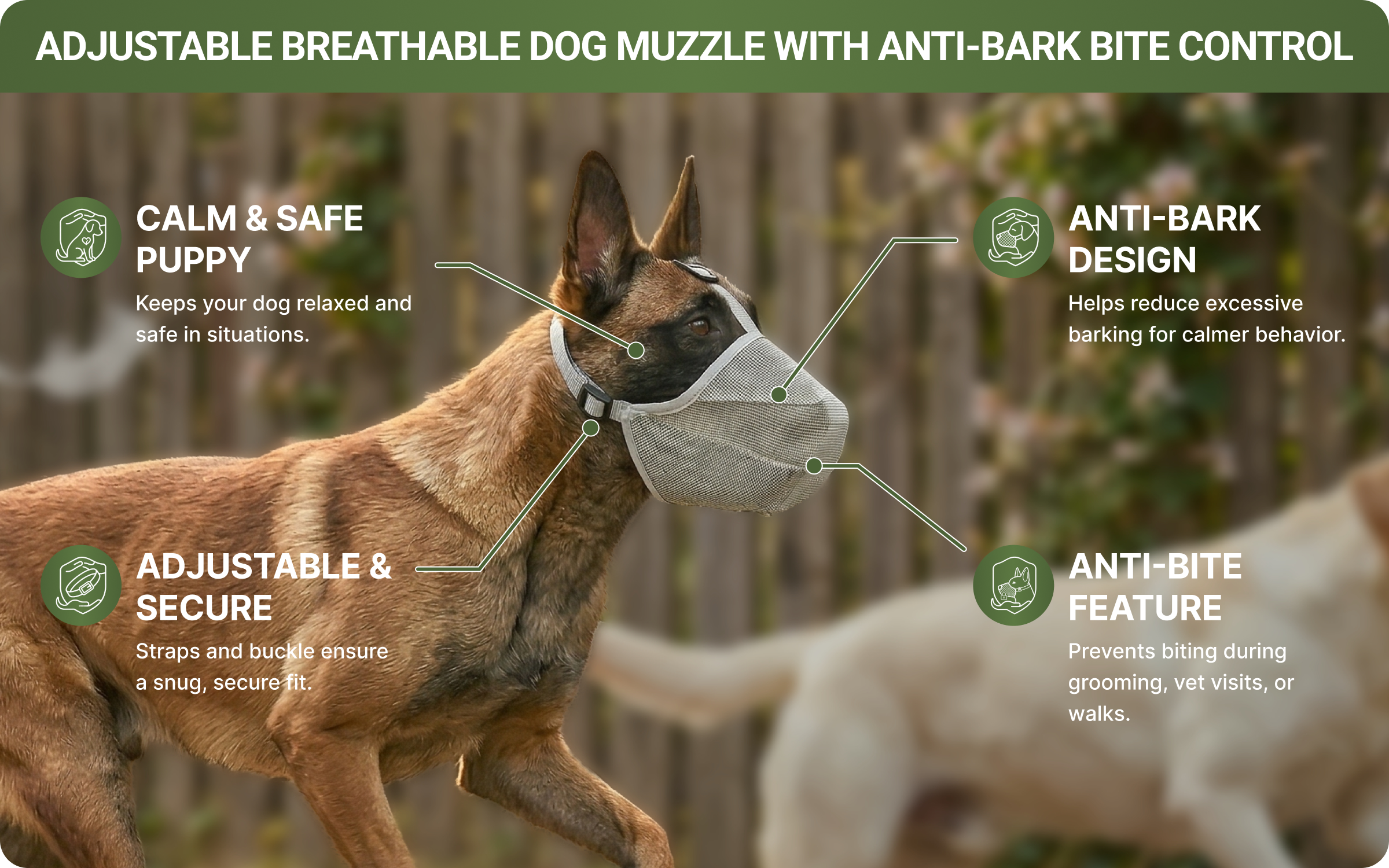 I bought this muzzle for my dog who gets anxious around strangers. The breathable mesh design keeps him comfortable even when he’s wearing it for a while. It doesn’t dig into his skin or leave marks. I can tell he feels less stressed with this compared to other muzzles we tried.