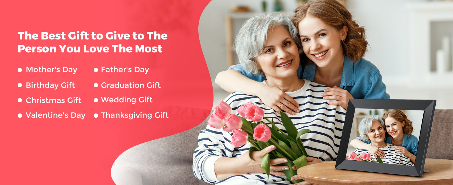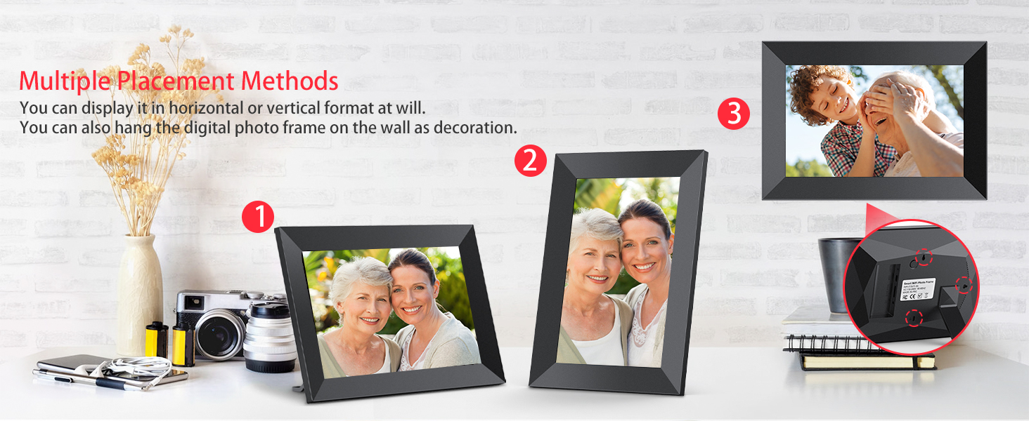 Thanks to the WIFI Frameo feature, you can instantly upload and share photos from anywhere in the world. Whether you're sharing recent photos with your parents or showing off your travels to friends, this digital photo frame ensures memories are always at the fingertips of those you care about.