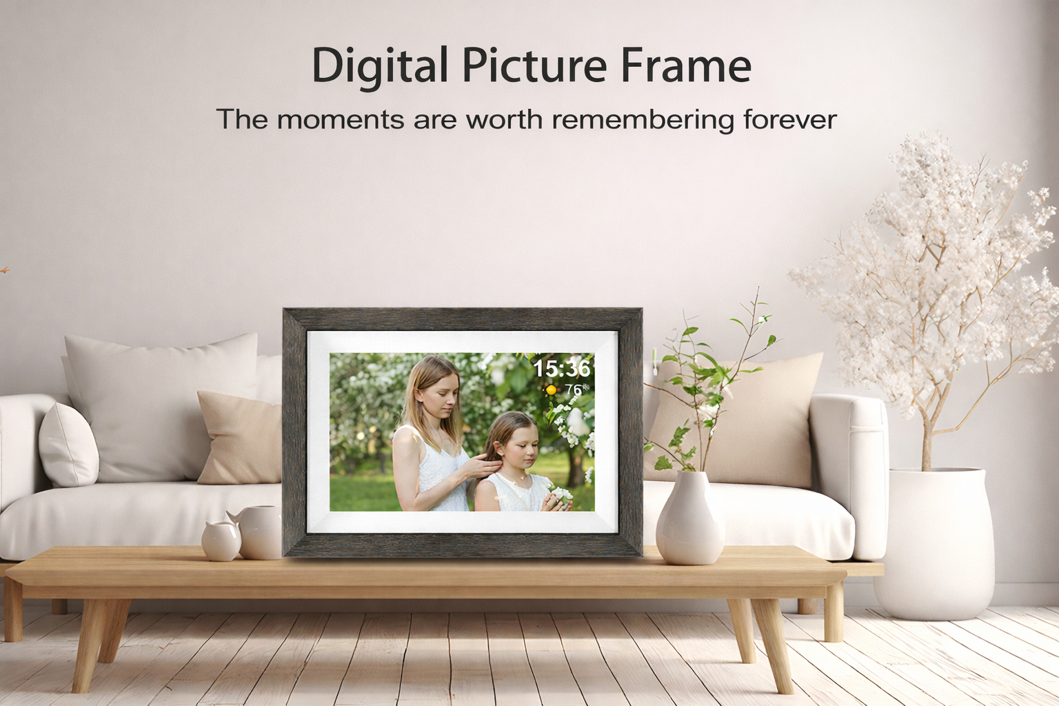 High-Definition Touch ScreenEnjoy crisp and vibrant images on the HD touch screen digital picture frame. The frame's sharp resolution brings every photo to life, whether it’s a vacation snapshot or a special family gathering. The HD touch screen makes navigation smooth and easy, allowing you to control your display effortlessly.