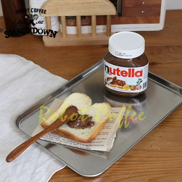 Stainless Steel Nordic Coffee Shop Tray - Rectangular Storage Dish for Snacks, Cakes, and Desserts