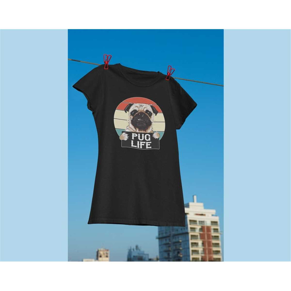Women's Pug Life T Shirt Ladies Short Sleeve Thug Pug Tshirt Gift for Her 9000 Trending Apparel