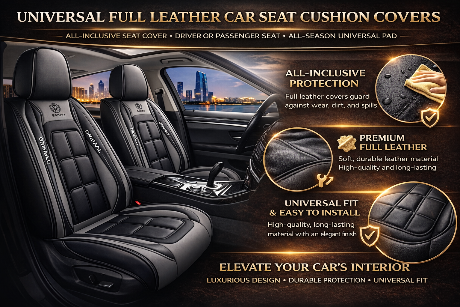 The all inclusive seat cover is crafted with luxurious, full leather material, designed to protect your car seats while adding a sleek, modern touch. Perfect for both driver's seat cover and passenger seat cover, this cushion ensures your car's interior stays pristine and comfortable in any season.