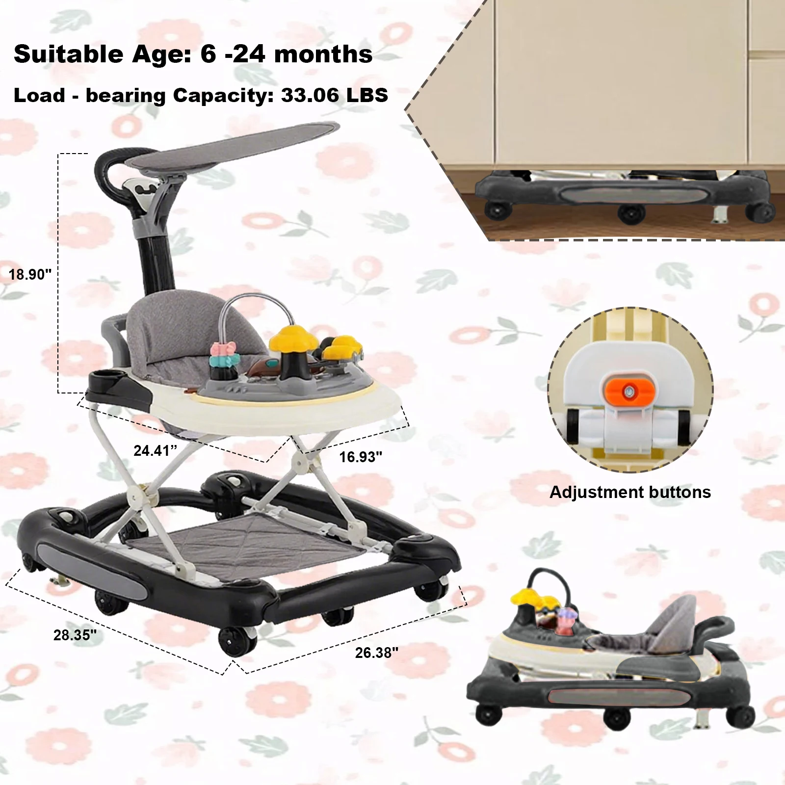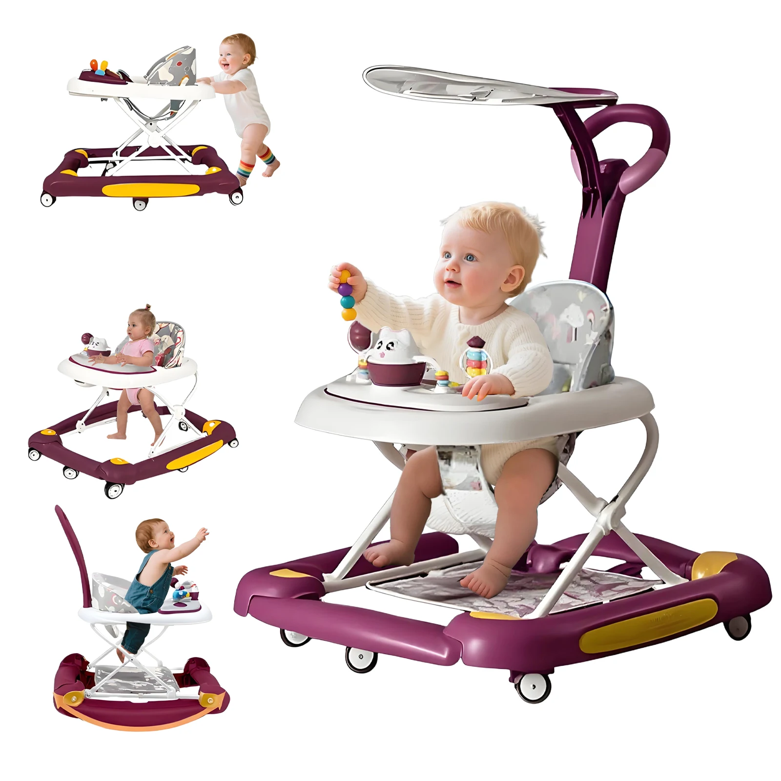 Baby Multi-Functional Comfortable Walker With Awning Anti-Rollover Baby Walker Can Sit, Adjust And Shake The Walker
