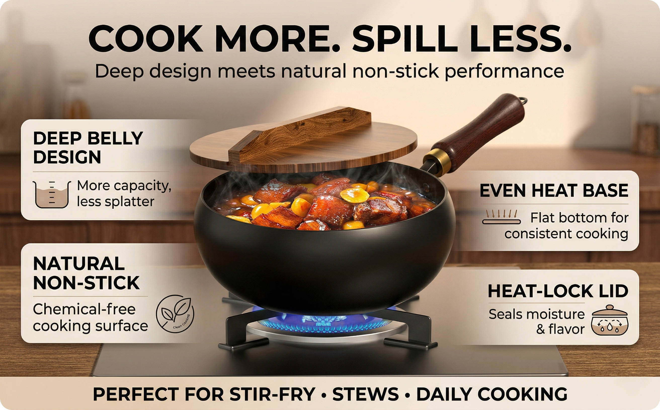 Why Choose Our Big Belly Pot Deepened Non Stick Iron Pot Flat Bottom Frying Pan with Lid
