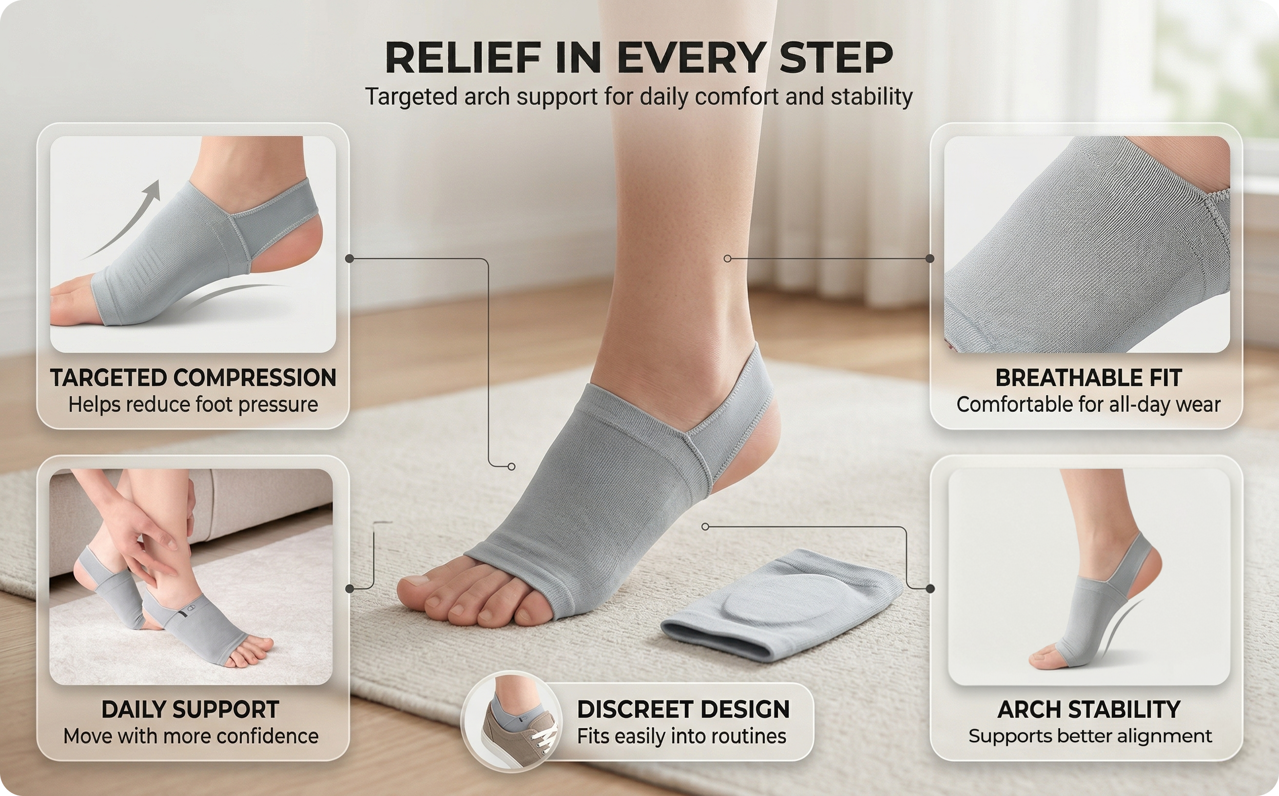 Give your feet the comfort and support they need with a sleeve designed for steady, everyday wear. Order now and enjoy a more comfortable step through work, walks, and daily routines.