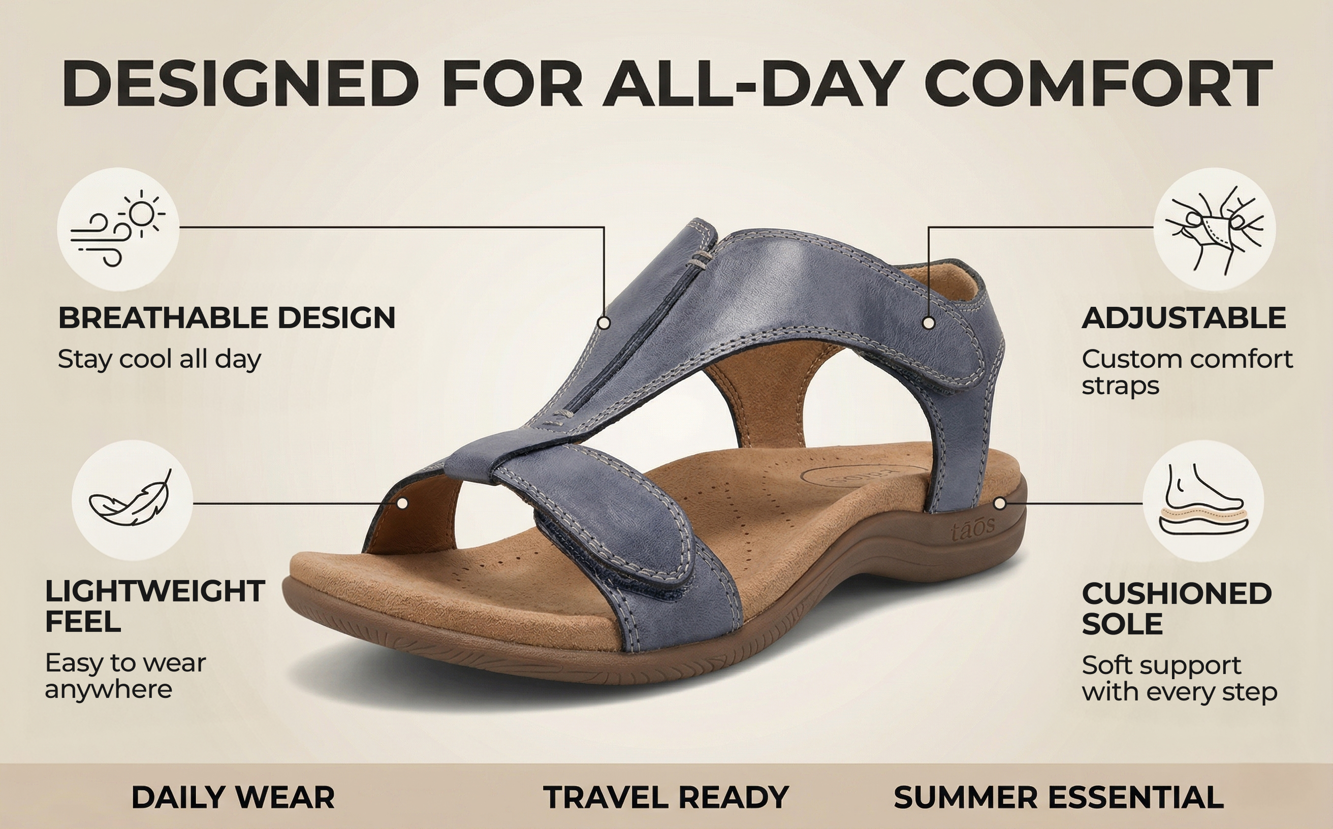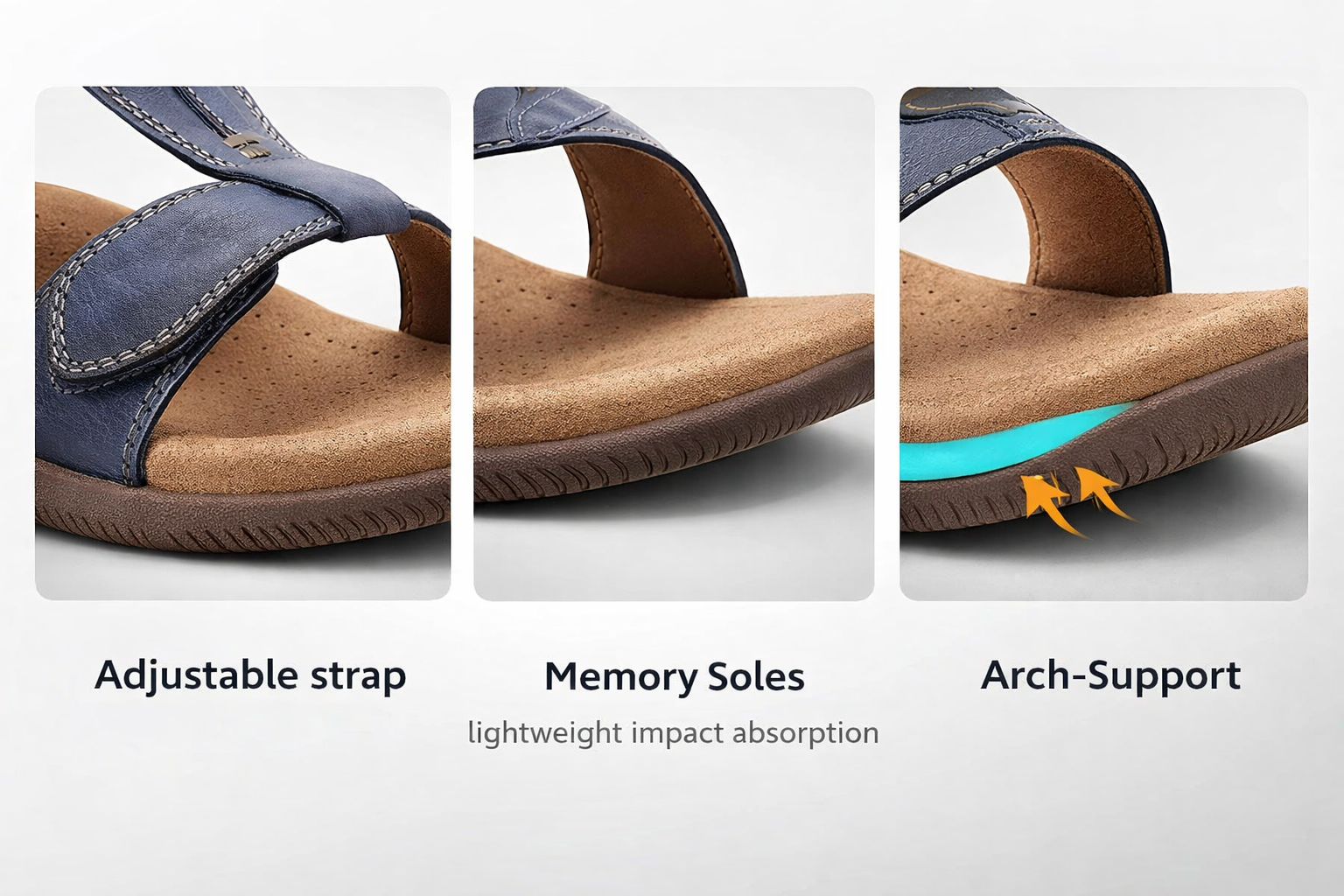 These stylish and supportive sandals are perfect for daily use, vacations, or long warm-weather walks—pairing flexibility with feminine flair.