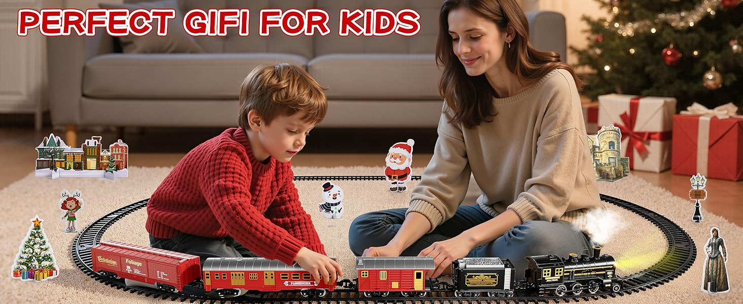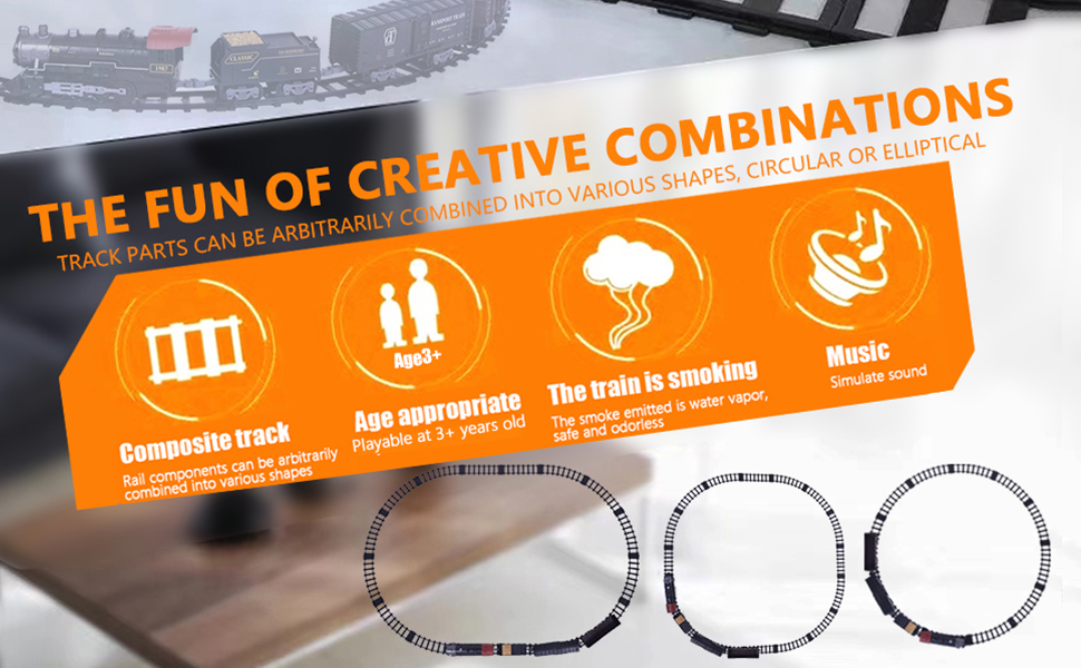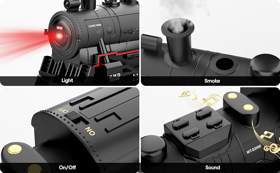 One of the most unique features of this train set is the smoke effect. Simply add water to activate the smoke, which flows out of the locomotive, giving it a lifelike presence. The smoke train toy will captivate kids, adding an extra dimension of fun as they watch the train chug along with realistic effects. Perfect for adding excitement to any room!Easy to Operate and Enjoy