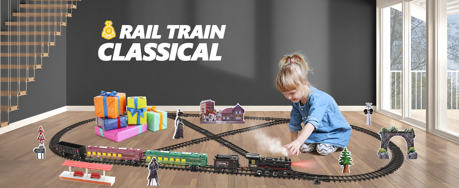 The Electric Train Set With Smoke is a battery-operated STEM toy designed to replicate the look, sound, and motion of a real steam locomotive, complete with functional smoke, sound effects, and lighting. It provides a sensory-rich play experience that supports learning, creativity, and motor skill development in children.