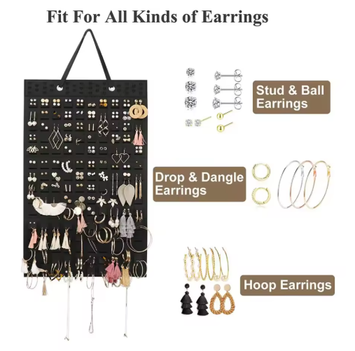 Organize your jewelry beautifully while saving space. This felt jewelry hanging organizer is designed to store earrings, necklaces, rings, and accessories neatly in one place, keeping them visible and tangle-free. Made from soft yet durable felt, it protects delicate pieces while adding a clean, minimalist touch to your home décor. The wall-mounted design makes it perfect for bedrooms, closets, or dressing areas. Functional storage that doubles as stylish decoration.