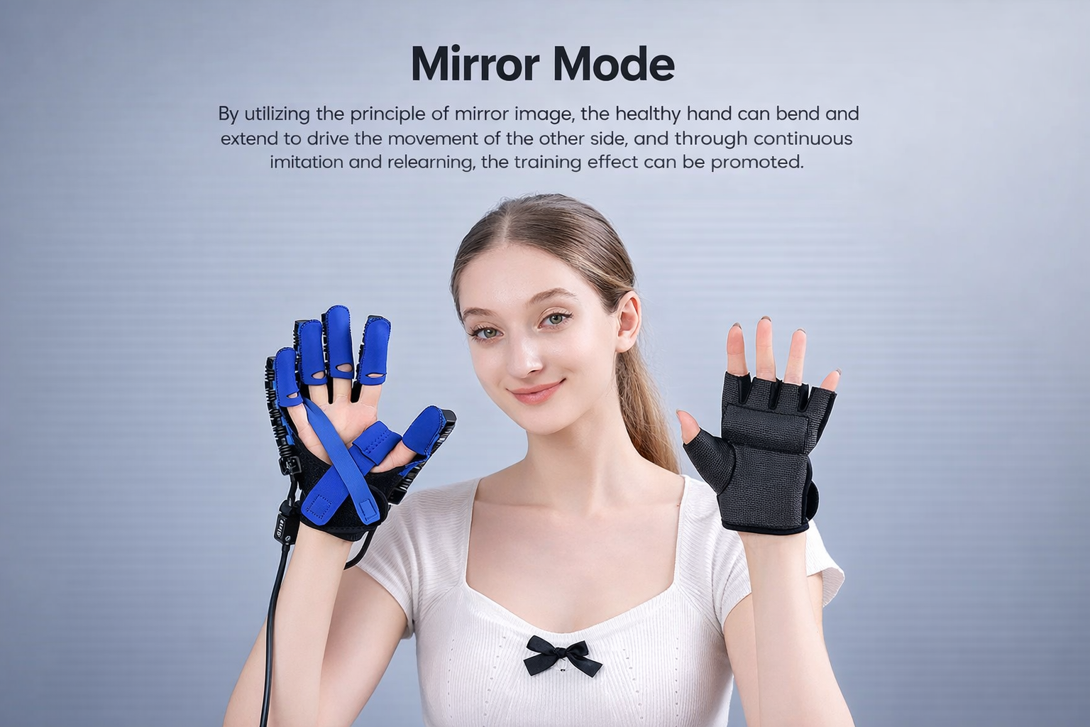 Mirror Glove Synchronization — Mirror mode allows synchronized movement between hands, stimulating brain remodeling for faster recovery.