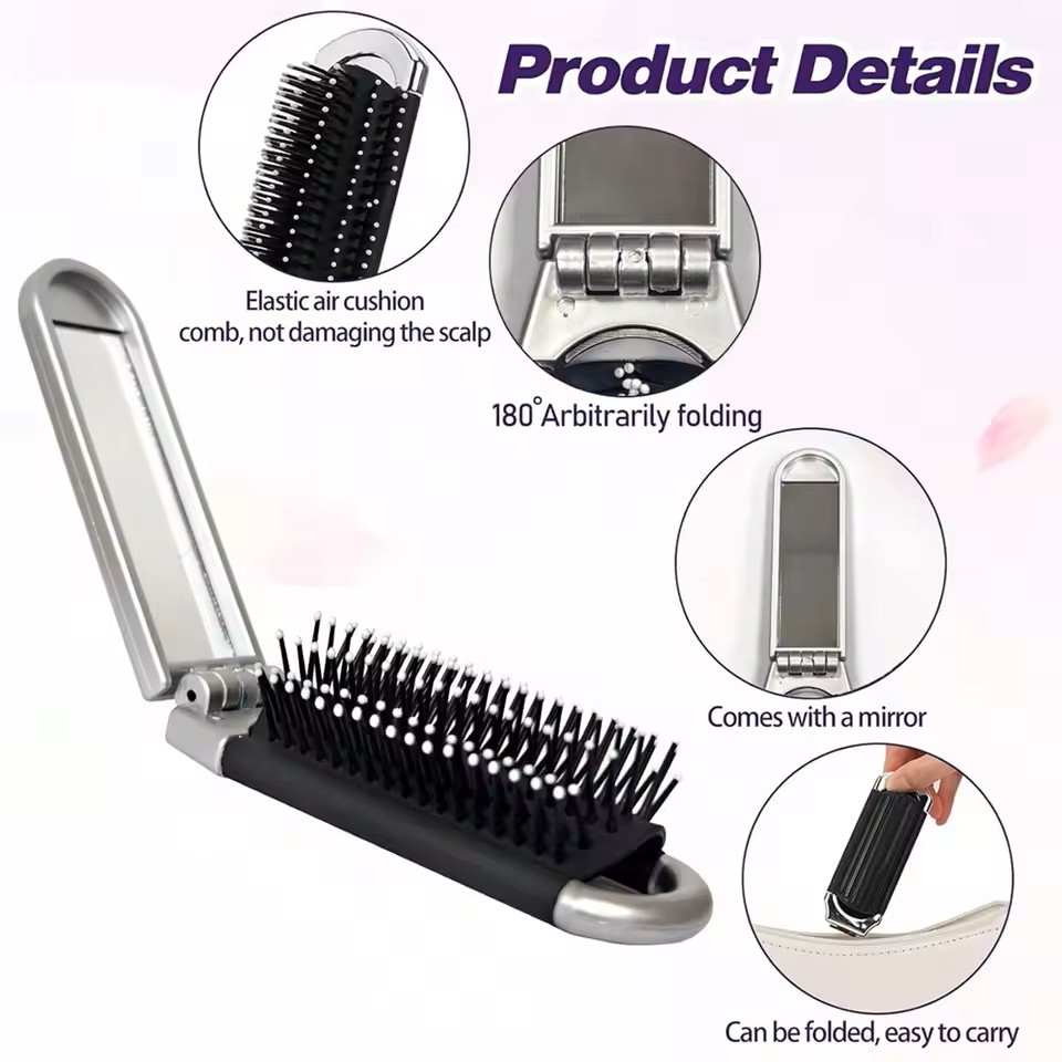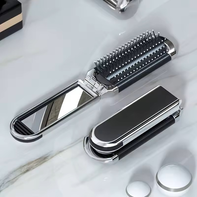 Stay stylish on the go with this Foldable Mirror Comb, a compact beauty essential designed for quick touch ups anytime, anywhere. Featuring a mini airbag massage brush and a built in retractable mirror, this portable tool easily fits in your pocket, purse, or travel bag. Perfect for detangling hair, massaging the scalp, and refreshing your look whether you are outdoors, traveling, or simply on the move.
