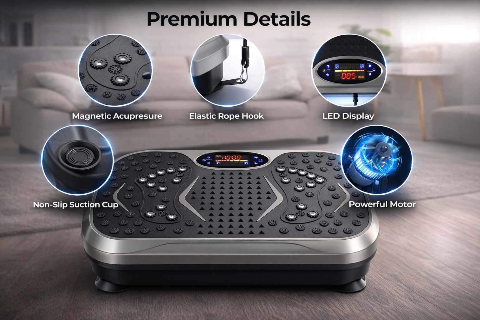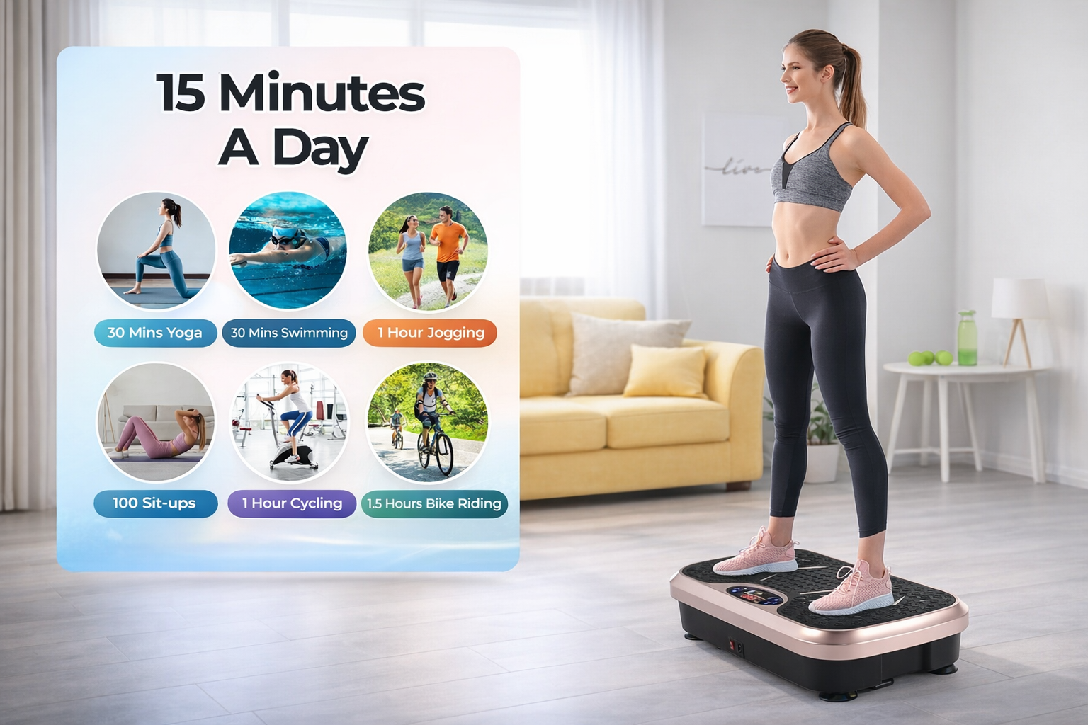 A Vibration Plate Exercise Machine is a whole body vibration platform designed to activate muscles, support circulation, and deliver effective home workouts in minutes without high-impact strain. It helps solve the problem of inconsistent fitness routines by making workouts faster, easier, and more engaging.