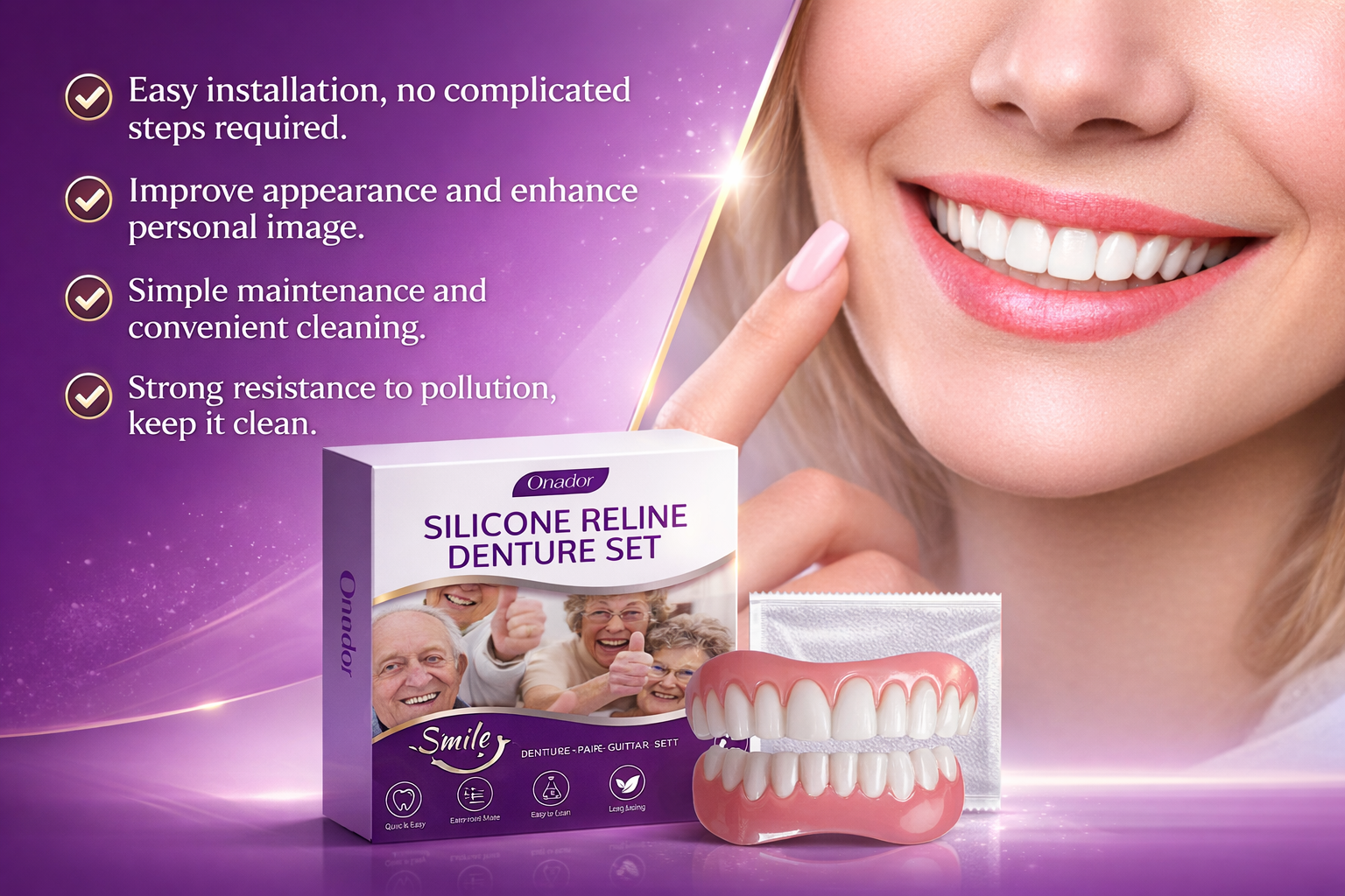 Say goodbye to the discomfort of loose dentures. The Silicone Denture Reline Kit offers long-lasting comfort with a secure, customized fit. Order now and enjoy a more comfortable, confident smile at home!