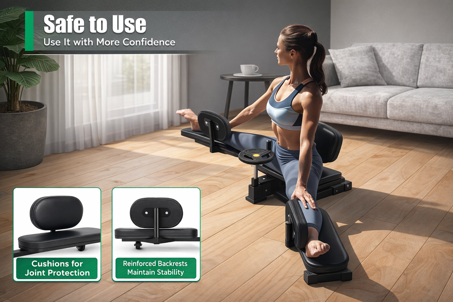 Strength Training & Flexibility: Not only will this split machine for strength training help you get closer to your flexibility goals, but it also contributes to overall strength development. Whether you are an athlete or a fitness enthusiast, this machine will support your goals by providing controlled, effective stretching and strength training sessions right at home.