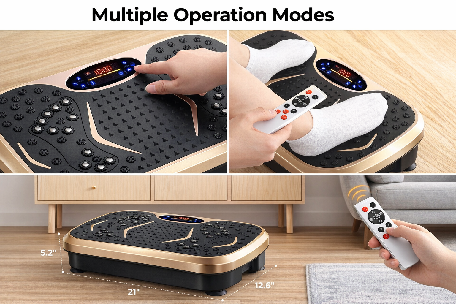 I bought this vibration plate to help tone up without putting too much stress on my joints. After a month of consistent use, I feel stronger and more stable. The different speed settings make it easy to adjust the intensity. I especially love using the loop bands for arm workouts. It feels like a full-body session in just 20 minutes.