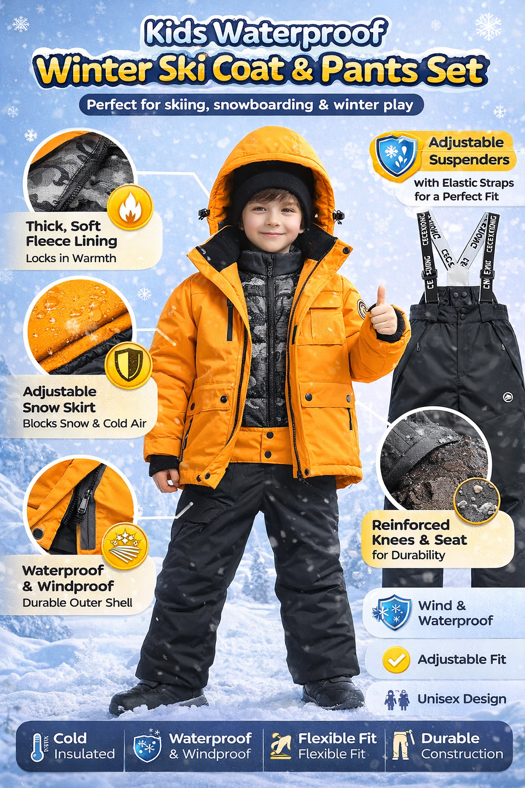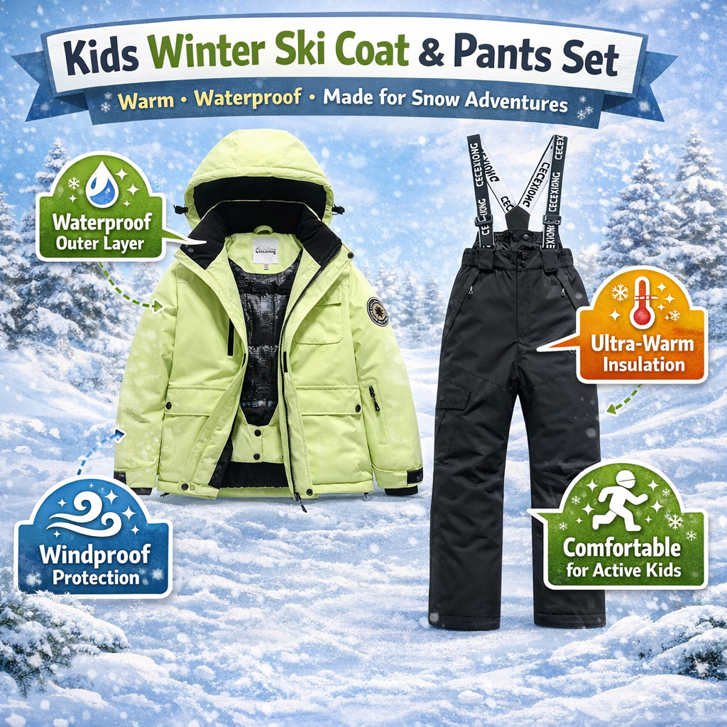 When winter hits hard, your child deserves gear that keeps them warm, dry, and confident outdoors. This Kids Winter Ski Coat and Pants Set is designed to handle cold temperatures, snow, and wind while giving kids the freedom to move, play, and explore comfortably.