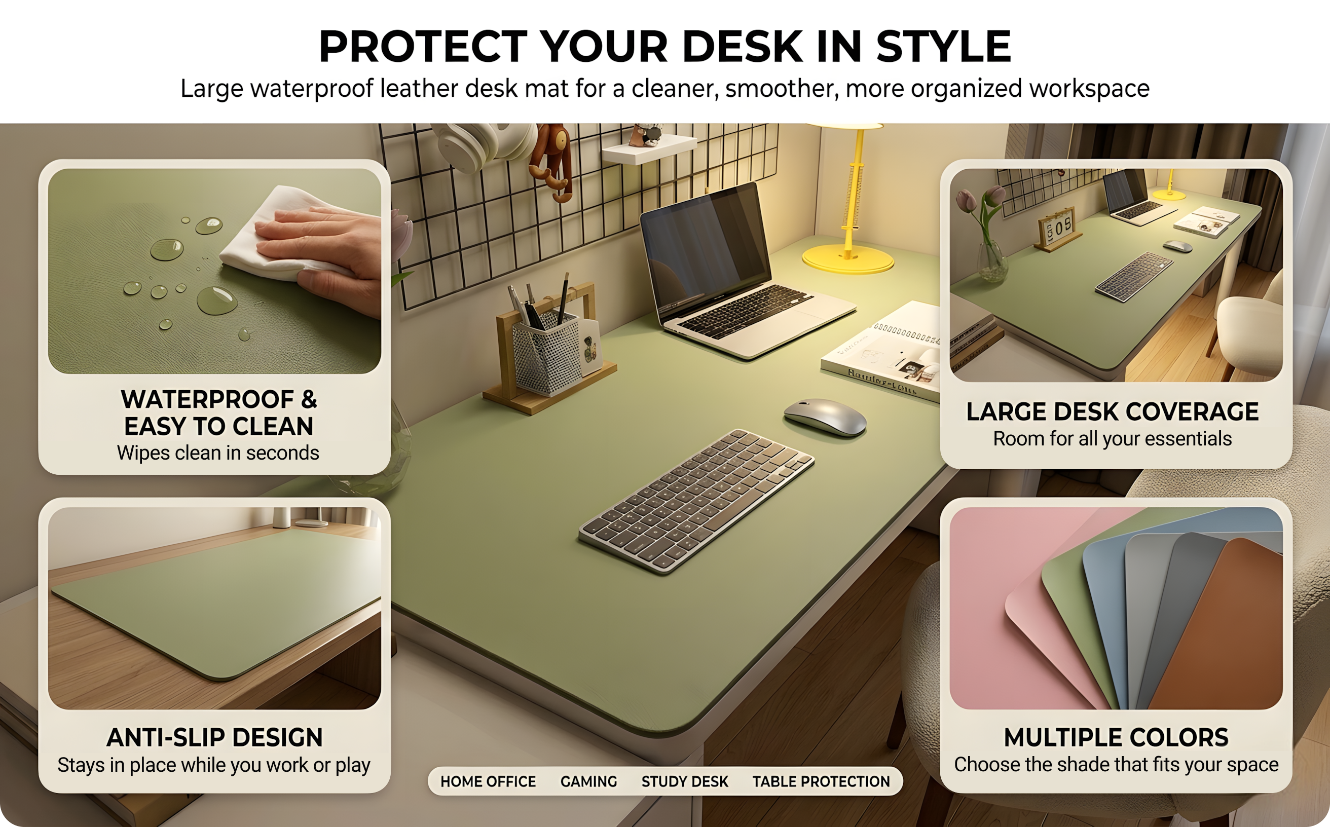 Why Choose Our Large Desk Mat, Waterproof Table Protector, Anti-Slip Gamer Keyboard & Mouse Pad for Home & Office
