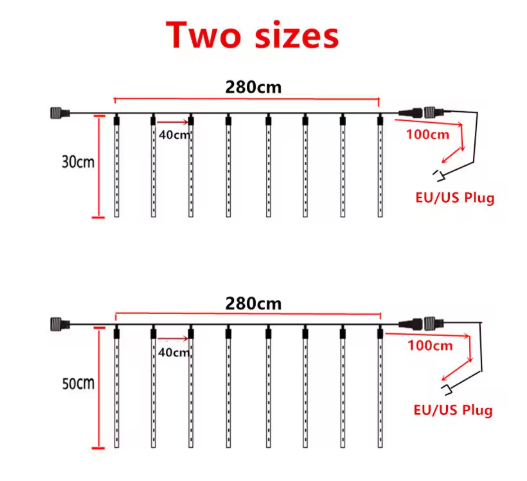 Hang the lights vertically, plug them in, and watch as the LEDs cascade downward in a smooth meteor rain effect.