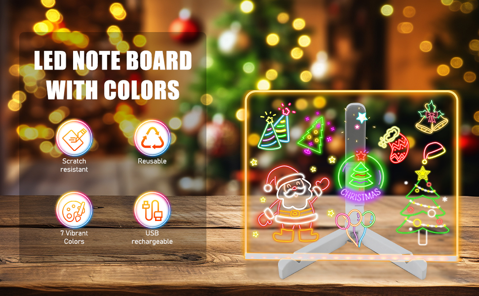 LED Note Board With Night Light, Colorful DIY Acrylic Message Board Childrens Drawing Board, Kids Birthday Gift