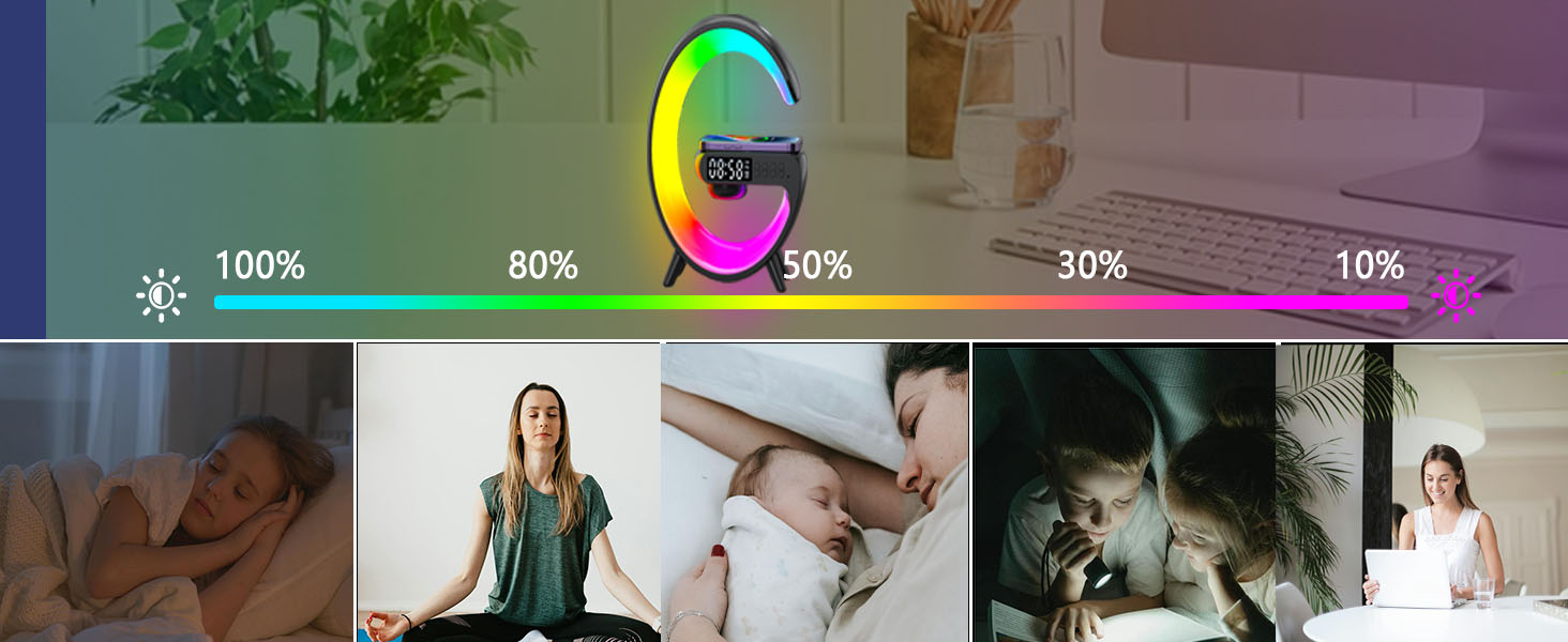 Instead of cluttering your nightstand with a separate clock, charger, lamp, and speaker, this device replaces them all. As you drift off, calming colors create a peaceful environment. While you sleep, your phone charges wirelessly. And when morning comes, you rise to light, not noise.