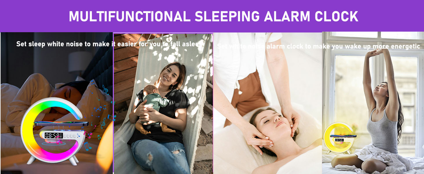 The G-shaped design is more than just a visual statement—it’s a daily companion that blends function and wellness. Wake up gradually with warm light, wind down with relaxing sounds, and eliminate messy cords from your nightstand. Whether you're trying to improve sleep hygiene or declutter your space, this device makes it easy. Bluetooth streaming, fast wireless charging, and ambient RGB lighting are all housed in one seamless system.