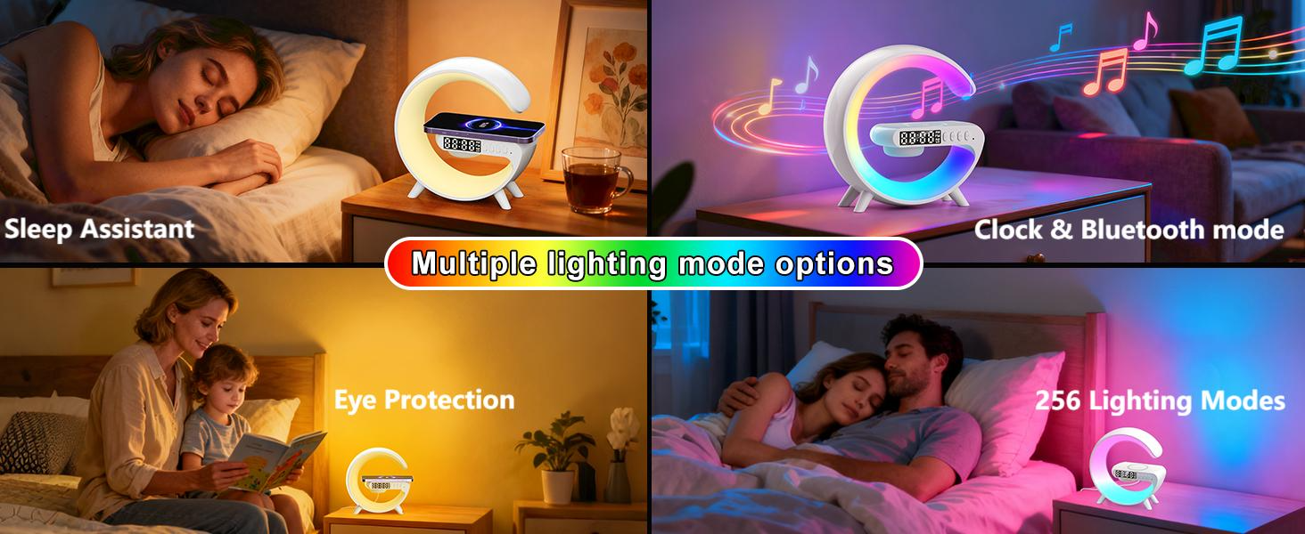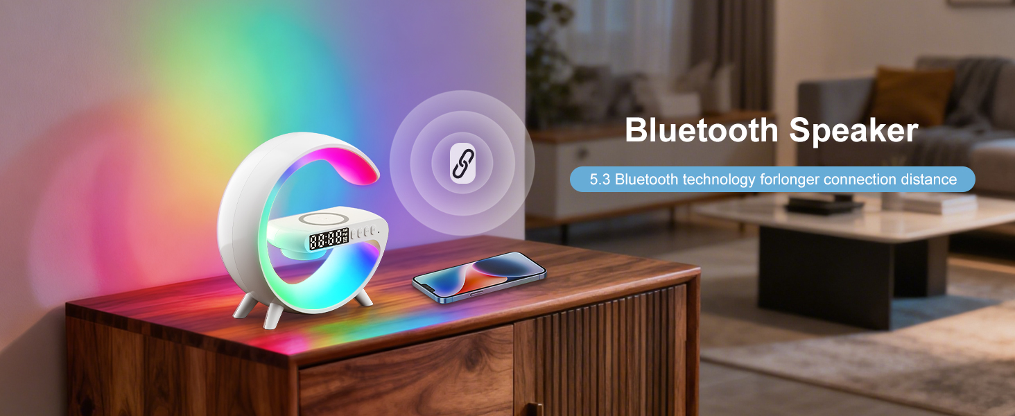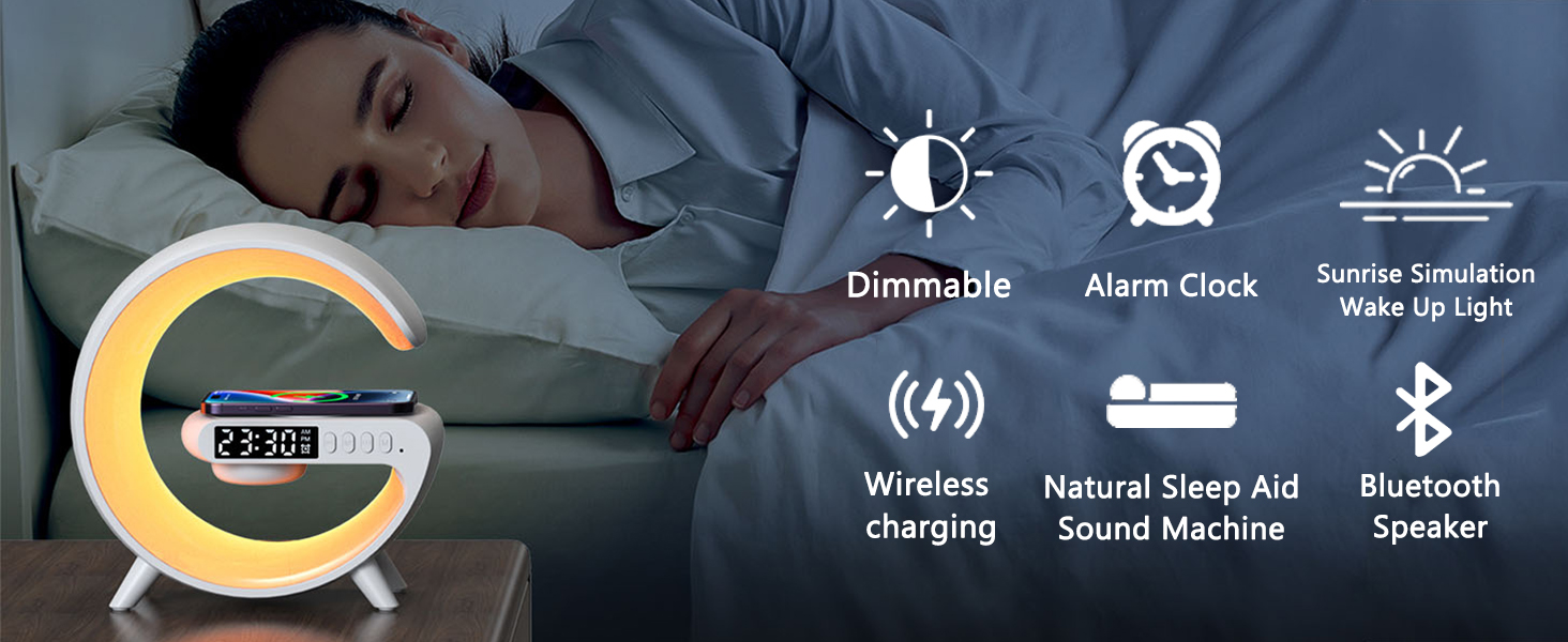 At night, it becomes part of your wind‑down routine. Soft ambient lighting helps signal rest, while the speaker lets you play music, podcasts, or calming sounds without needing another device. Meanwhile, your phone charges wirelessly right where you leave it, reducing cable clutter and keeping your nightstand simple and organized.Instead of managing multiple gadgets, you get one purposeful bedside companion that supports both better sleep and smoother mornings.