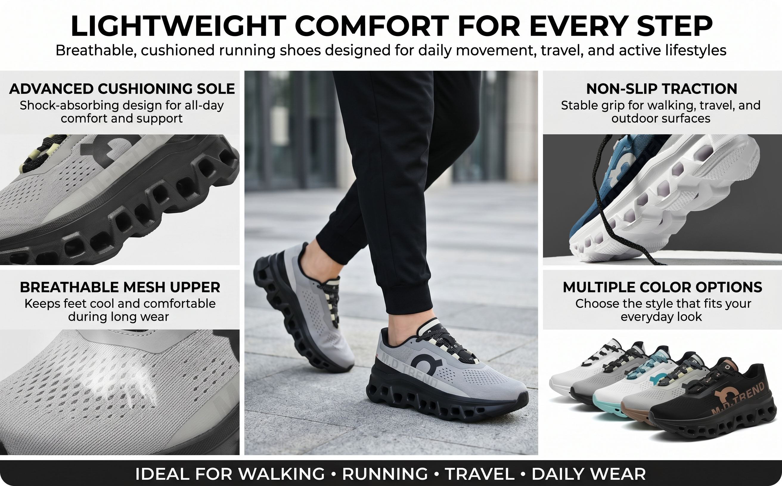 Key Features- Ultra-lightweight design reduces foot fatigue and boosts mobility