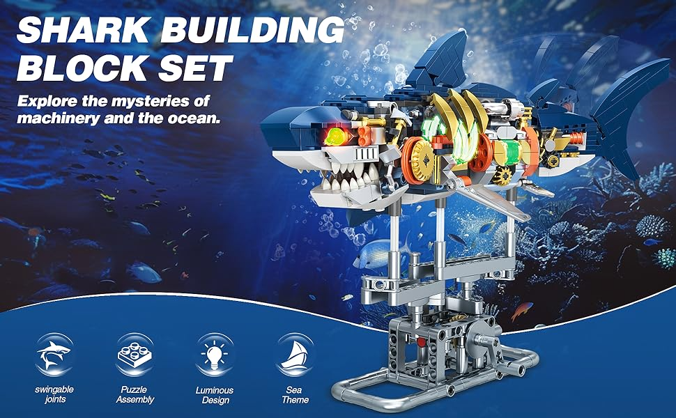 This mechanical shark model building kit is a hands-on educational toy that teaches marine life concepts, enhances spatial reasoning, and promotes screen-free learning. It solves the need for meaningful play by engaging kids and adults in constructing a realistic ocean predator that lights up for display.