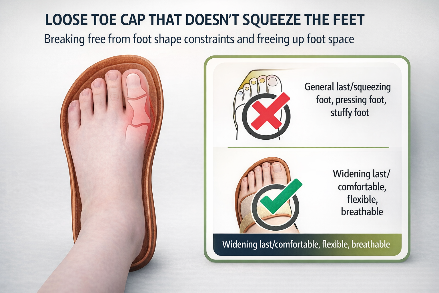 • Wide toe box for natural comfort and reduced foot pressure