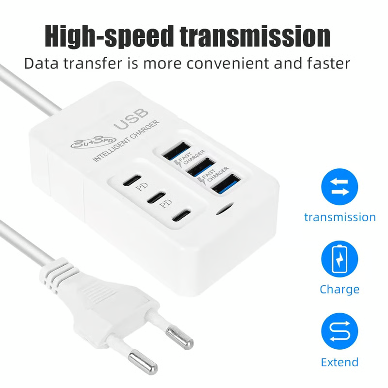 This multi-port USB wall charger hub lets you charge several devices from a single wall outlet, so you stop fighting for plugs, swapping adapters, and waiting your turn to power up.