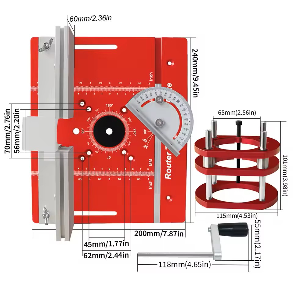 Constructed from durable CNC-machined aluminum alloy, the insert plate provides a perfectly flat and rigid surface for your router. The integrated router lift mechanism lets you adjust bit height from above the table with ease – no more struggling with under-table access. Ideal for hobbyists and professionals alike, this system transforms your router table into a high-precision workbench.