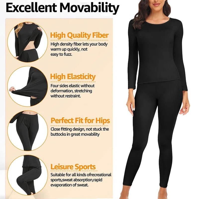 Stay warm when the cold sets in — this Women’s Thermal Underwear Set gives you two complete long‑johns sets (top & bottom) with ultra‑soft fleece lining designed to trap heat close to your body. Whether you’re layering under outdoor gear, lounging at home, or braving a chilly commute, these base layers keep you comfortable with minimal bulk. The stretchy, soft fabric adapts to your movements, while the brushed fleece interior delivers cozy insulation without feeling heavy.