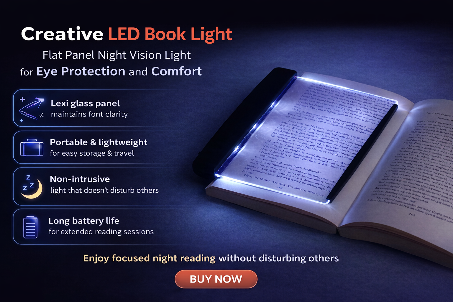 Experience the joy of reading in comfort with the LED Book Light, designed for eye protection and easy use. Shop now and enhance your reading routine today!