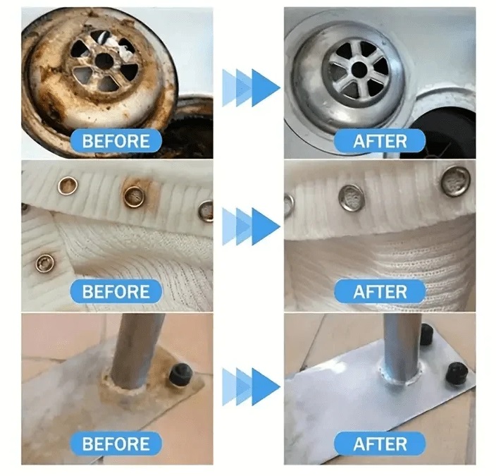 • Powerful Decontamination: Quickly dissolves rust, stains, and oxidation on metal surfaces.
