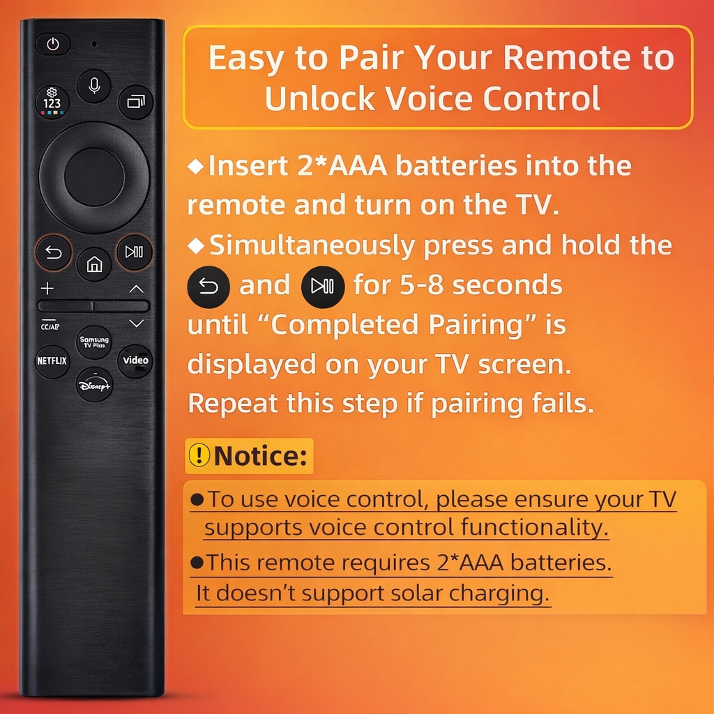 Hands-Free Control: Say goodbye to the hassle of buttons. This remote allows you to control your Samsung TV using only your voice.
