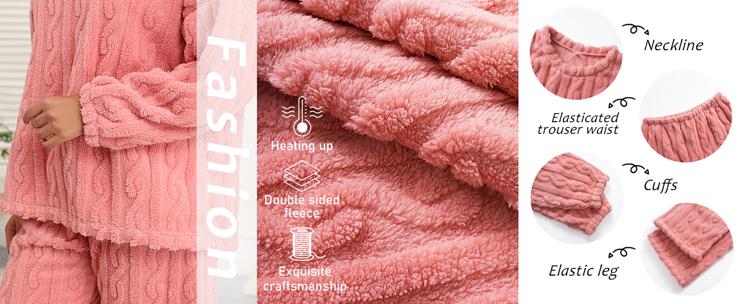 Soft Coral Velvet Pajamas Set for Women, Warm Jacquard Lounge wear, Cozy Winter Outerwear, Christmas wear