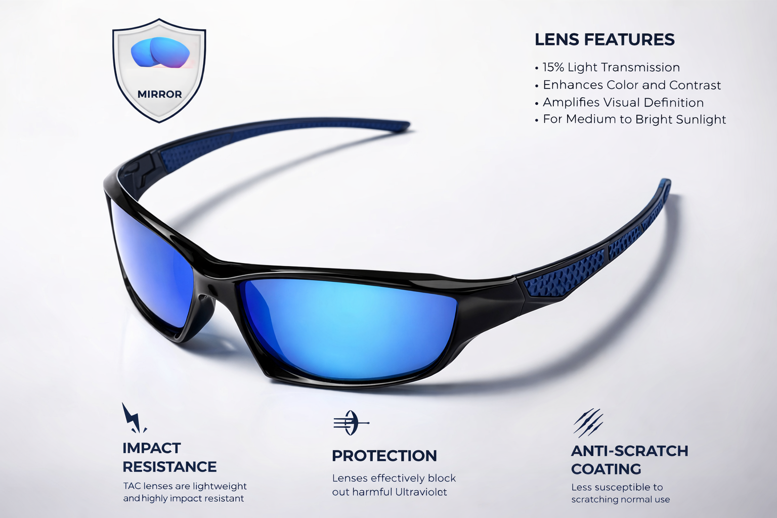 • Polarized lenses reduce glare and improve clarity