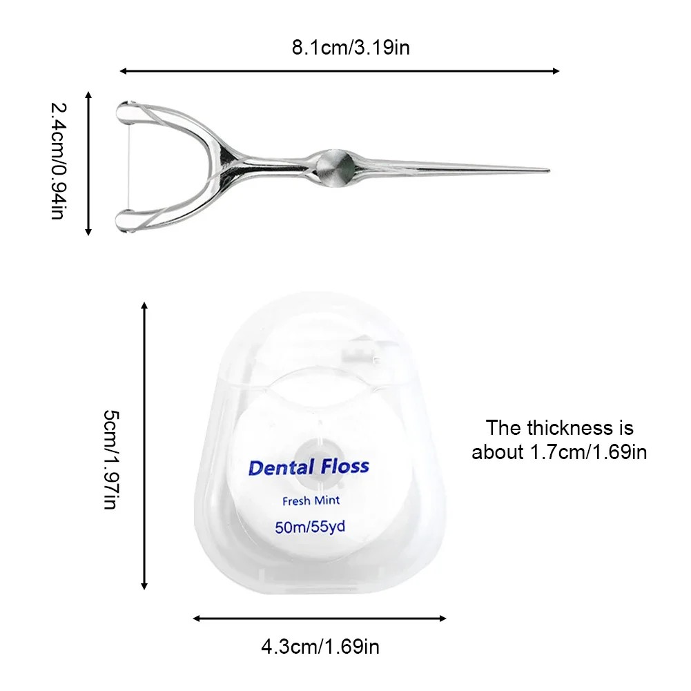 Material: Stainless steel (toothpick), ABS or metal (handle), reusable floss head (depending on model)