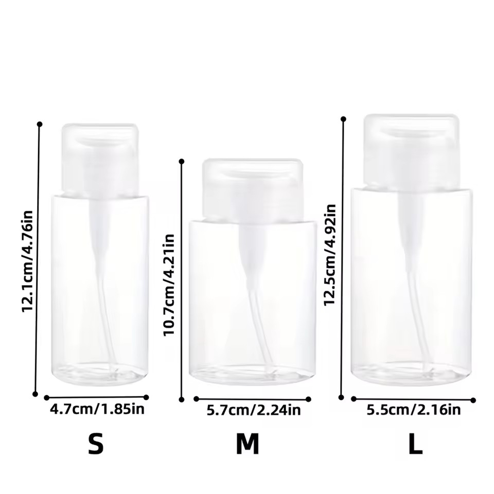 Make your beauty routine cleaner and easier with this Transparent Push-Down Pump Bottle Dispenser, designed for effortless, one-handed liquid dispensing. Perfect for nail polish remover, toner, makeup remover, cleansers, alcohol, or DIY skincare blends, this refillable bottle delivers the right amount of liquid with a simple press.