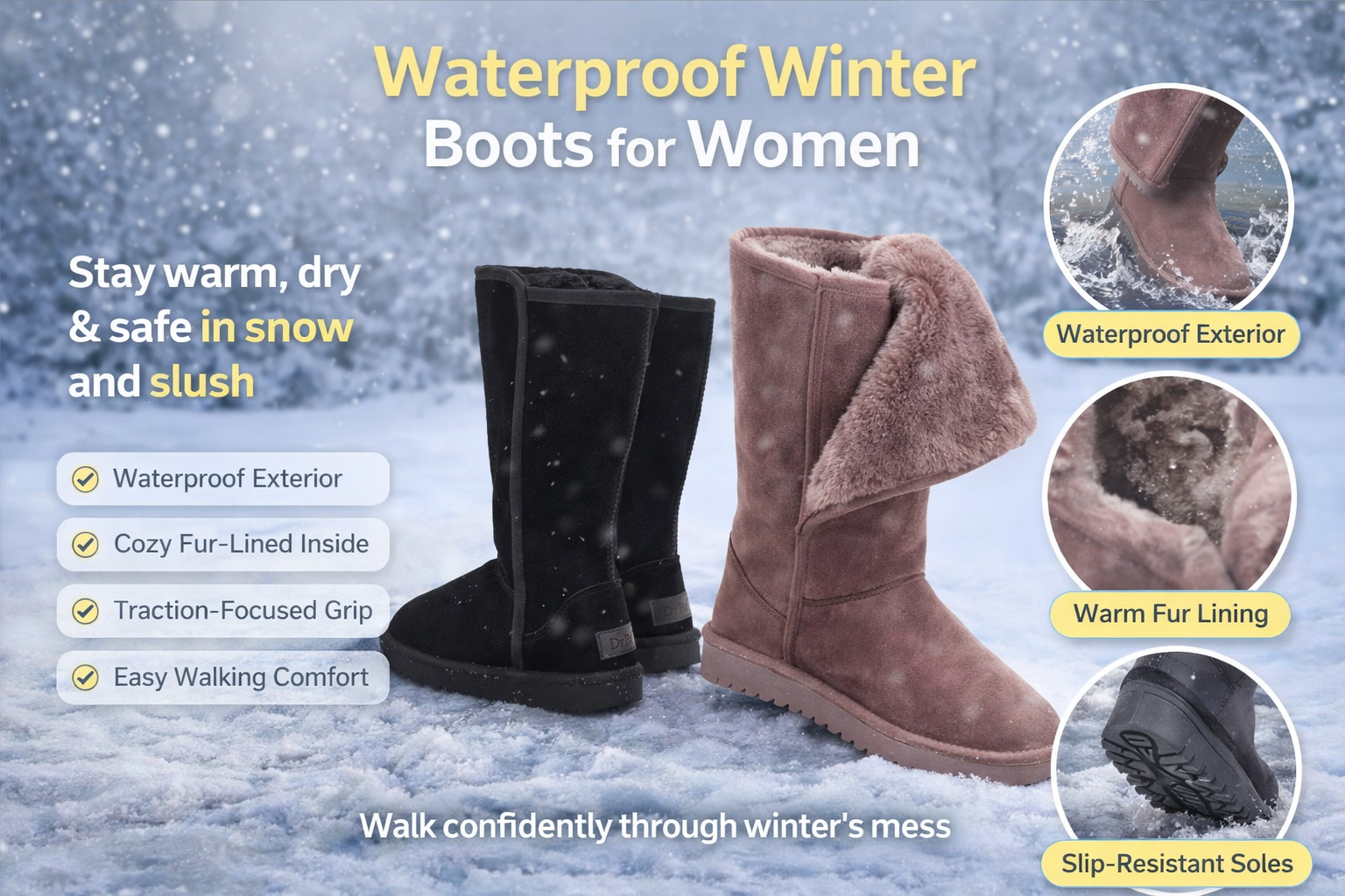 Winter doesn’t just feel cold, it feels inconvenient. Wet sidewalks, icy patches, and freezing wind can turn a simple errand into a struggle. These boots are built for everyday winter life, when you still have to commute, shop, travel, and step outside even when the weather is messy.