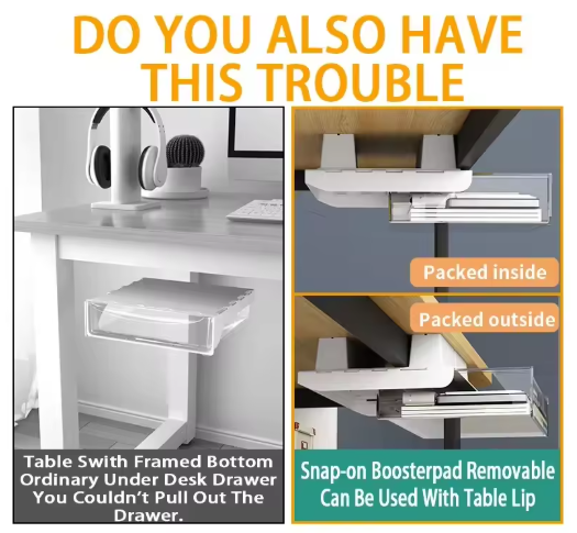 Upgrade your workspace with hidden storage that saves space and reduces clutter. Experience how this Under-Desk Drill-Free Storage Drawer keeps your desk neat, efficient, and stress-free.