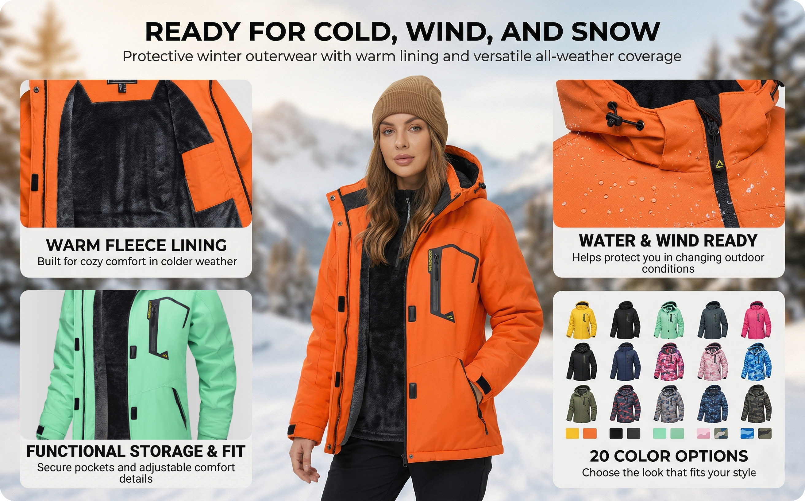 Why Choose Our Women’s Waterproof Ski Jacket Thermal Fleece Winter Coat Windproof Snowboard Parka